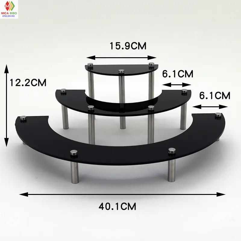 - Dày 3mm 4mm 5mm: Kệ được làm từ chất liệu mica dày từ 3 đến 5 mm, đảm bảo sự cứng cáp và độ bền cao.