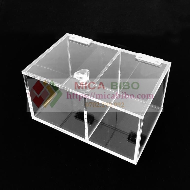 Hộp Mica 2 ngăn cao cấp (DxRxC) là sản phẩm hoàn hảo để bạn giữ gìn và trưng bày những vật dụng quý giá của mình.