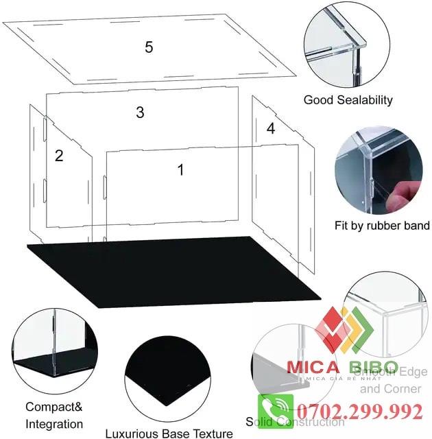 Hộp mica trưng bày sản phẩm kích thước lớn, thiết kế lắp ghép nhiều kích thước để phù hợp với nhu cầu trưng bày sản phẩm của bạn một cách dễ dàng và tiện lợi.