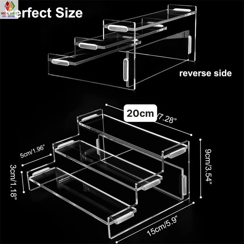 Vật liệu Mica có tính chất trong suốt. Với thiết kế thông minh này, quý khách hàng dễ dàng nhìn thấy qua các chi tiết sản phẩm ngay tại các điểm bán, thu hút sự quan tâm của bạn. Hơn nữa, Kệ Mica rất bền và dễ dàng vận chuyển khi di chuyển từ điểm này sang điểm khác.