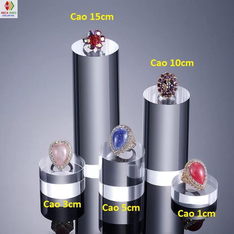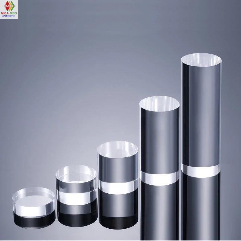 Khối mica trưng bày sản phẩm hình trụ dày 3cm có nhiều kích thước khác nhau để phù hợp với nhu cầu sử dụng của bạn.