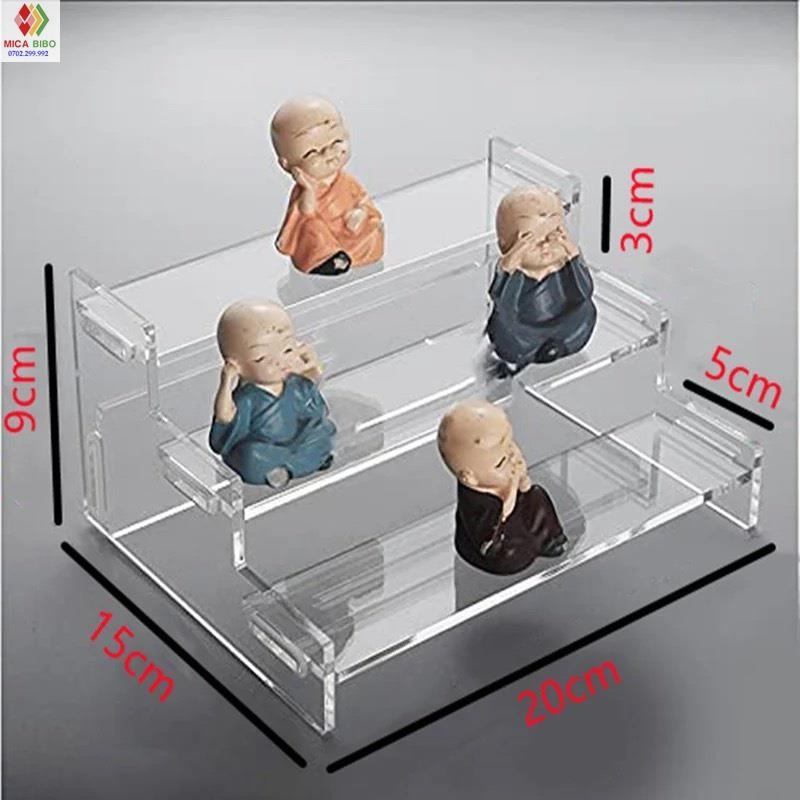 - Kích thước có trên ảnh sản phẩm, Dài 20cm, rông từng tầng 5cm, cao từng tầng 3cm,- Mica cao cấp, Dày 3mm