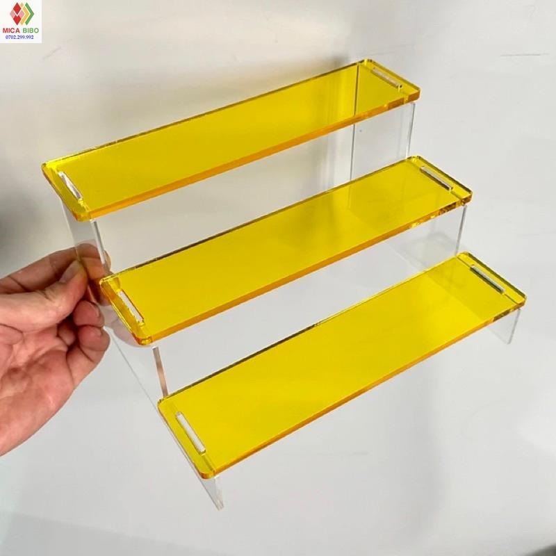 - Giá kệ mica nhỏ gọn, nhiều tầng đựng được nhiều sản phẩm cùng một lúc