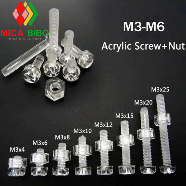 ỐC VÍT MICA M3 – M4 – M5 – M6 | ĐAI ỐC MICA TRONG SUỐT CAO CẤP – MICA BIBO