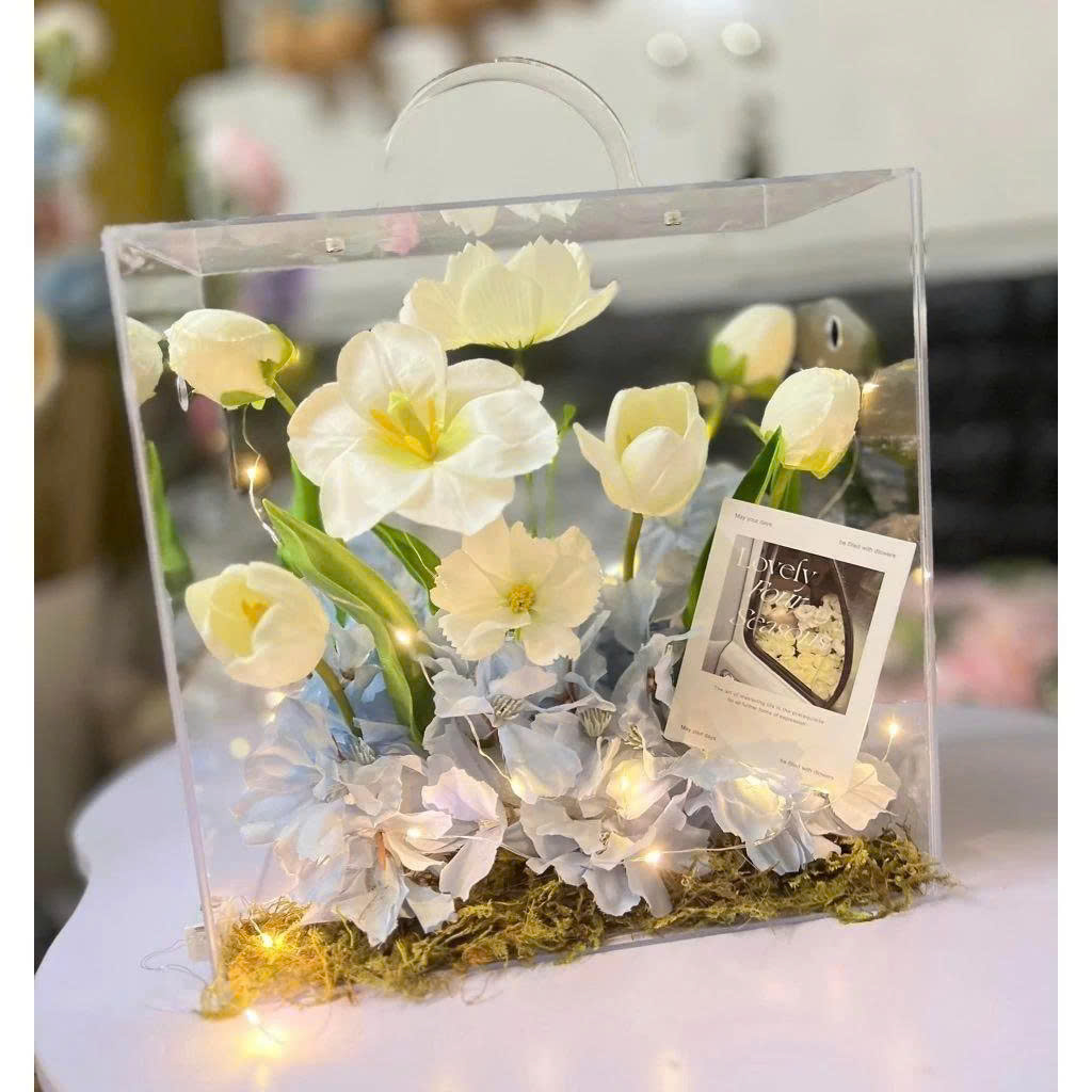 Vali hoa mica đang trở thành xu hướng quà tặng sang trọng trong các dịp lễ Tết, sự kiện doanh nghiệp và những khoảnh khắc đặc biệt như cầu hôn hay kỷ niệm. Sự trong suốt tựa pha lê của mica giúp mọi món quà bên trong được tỏa sáng theo cách trọn vẹn nhất.